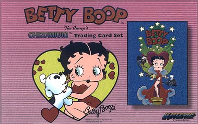 | |  Betty Boop, America's cartoon sweetheart, is back to make your day sweeter than ever! And this time she's bigger than ever as Krome Productions presents Betty Boop, The Pinup's Chromium Trading Card Set. Collect all 50 breathtaking images, which feature some of the finest Betty Boop artwork ever produced! Inserts include 50 Holochrome stickers, 5 Black/Silver Chrome, 4 Mystery Super ChaseBoop, The Pinup's Chromium Trading Card Set. Collect all 50 breathtaking images, which feature some of the finest Betty Boop artwork ever produced!