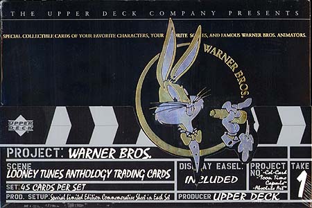 | |  Special collectible cards of your favorite characters, your favorite scenes, and famous Warner Bros. animators. Only 5500 limited edition hobby sets produced. New and unique technologies include 15 Classic Ink Cel Cards, 15 Toon Time Capsule Cards and 15 Absolute Artists Cards (exclusive to this set). A crash-numbered commemorative card of a famous Looney Tunes cartoon is inserted in each set. The common set is not included.
