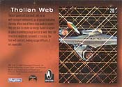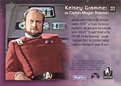The final set of the series brings a look at the many Cosmic Phenomena encountered. The Tribute subset recognizes the many stars who have made guest appearances on the show through the years and awards won by Star Trek. A timeline traces the history from the NCC-1701 to Voyager. Closing out this set is a Ships postview. Inserts include: 6 Exclusive Cards for the new Star Trek: The Card Game (1:6); 9 Etched-Foil Star Trek Tribute Cards that form a mural (1:12); 3 3-D Motion Cosmic Phenomena Cards (1:18) [M1 Apollo's Hand, M2 Crystalline Entity, M3 The Bandlands];1 Deep Space Nine Wormhole SkyMotion Exchange Card (1:180); Survey & Cinema Collection Card. Wrapper Offer: 4x5.5" version of the SkyMotion bonus card for $39.99 (limited to 5000). Collector's Album with card pages for $19.99. Both for $49.99. Expires 2/28/87.