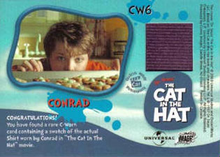 | |  One of the all time classics, Dr. Seuss's Cat In The Hat, comes to the screen this fall as a live action film starring Mike Meyers as "The Cat". Fans will delight in this film, as it includes everyone's favorites including Thing I and Thing II, and the Fish! Insert Cards| Qty | Name | Odds |