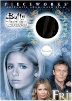 | 1 | Foil Limited edition B10-NSU only available in Non-Sport Update v18#4 Comic-Con Variant issue | | | | Promo | | | 9 | Forever Commemorative puzzle looking back at the seven amazing seasons of Buffy the Vampire Slayer | 1:11 | | 8 | Recollections Exclusive insights written by Joss Whedon about your favorite Buffy characters | 1:17 | | 3 | Leader of Slayers | 1:23 | | 14 | Pieceworks Featuring pieces of the actual costumes worn on-screen during Buffy the Vampire Slayer | 1:24 | | 1 | Welcome to Sunnydale Special pocket guide map folds out to show the scenic locations of Sunnydale | 1:145 | | 4 | Friends Forever Four puzzle Pieceworks® cards featuring the costumes of Buffy, Willow, Xander and Giles | 1:287 | | 1 | Propworks Own a piece of the stake! This special card (#SE-1) features a piece of the genuine resin stake used in the filming of Buffy The Vampire Slayer. Each card is sequentially numbered. | 1:2304 | | 1 | Case Loader "Legendary" | 1:case |