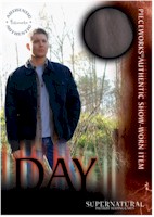 | 2 | Last Day Multi-Case Retailer Incentive Puzzle Pieceworks | | | 4 | Promo | | | 9 | Hell On Earth | 1:11 | | 6 | Betrayed | 1:17 | | 11 | Autograph | 1:24 | | 2 | Out Of Time | 1:24 | | 13 | Pieceworks | 1:24 | | 1 | Case Loader | 1:case | | 1 | Dual Autograph Multi-Case Reatiler Incentive Dual Autograph featuring the autographs of Jared Padalecki as Sam Winchester and Jensen Ackles as Dean Winchester | 1:10case |