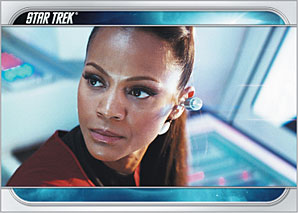 Costume cards will feature film-worn materials worn by key cast members, including Chris Pine (Kirk), Zachary Quinto (Spock), Karl Urban (Bones), Zoe Saldana (Uhura), Bruce Greenwood (Captain Pike), John Cho (Sulu), Anton Yelchin (Chekov) and Leonard Nimoy (Spock).