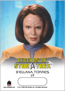 Each card in this set is printed on thick 20-point stock and is foiled stamped on the front with unique images of Voyager's Lt. B'Elaana Torres.