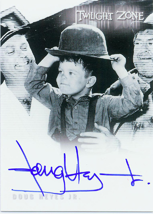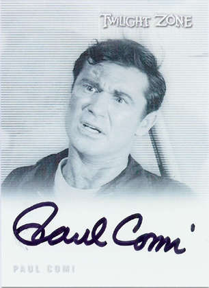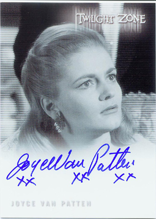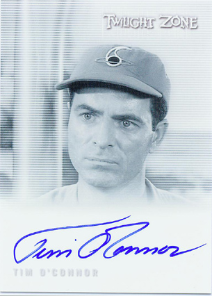 | |  The 79-card set will cover all 156 original Twilight Zone episodes from 1959 to 1964 with 2 episodes per card. Every box will include 4 autograph cards! Signers include: • John Astin (A Hundred Yards Over The Rim) • Cliff Robertson (The Dummy) • Morgan Brittany (Caesar and Me) • Richard Erdman (A Kind of Stopwatch) • Jean Marsh (The Lonely) • June Foray (Living Doll) • Earl Holliman (Where Is Everybody?) • Noah Keen (The Trade-Ins) • Tim O'Connor (On Thursday We Leave For Home) • Linden Chiles (Four O'Clock) • David Macklin (Ring-A-Ding Girl) • Mariette Hartley (The Long Morrow) • More to be announced soon!
