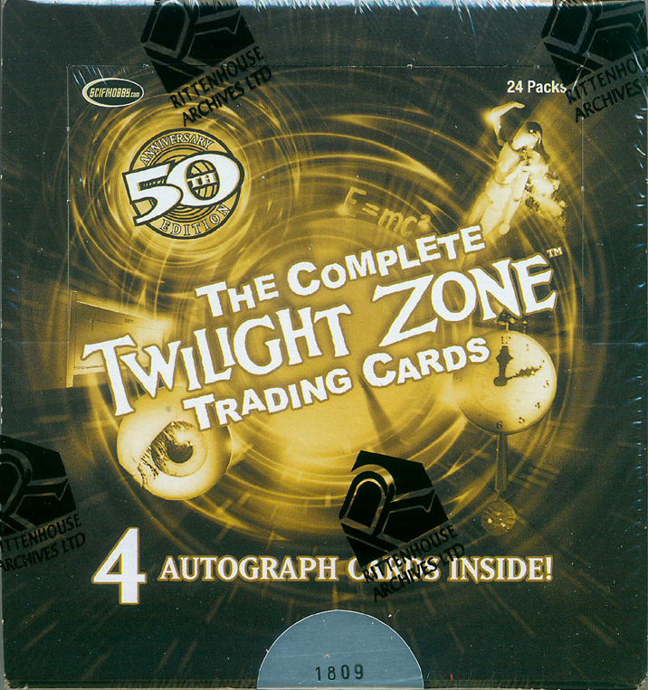 | 3 | Promo | | | 49 | Autograph | 1:6 | | 18 | In Motion Lenticular | 1:12 | | 9 | Life of Its Own | 1:12 | | 9 | Portraits | 1:12 | | 1 | Case Topper Rod Serling sequentially numbered facsimile autograph | 1:case | | 1 | Retailer Incentive (3) Cliff Robertson "A Hundred Yards Over The Rim" Autograph Card | 1:3case | | 1 | Retailer Incentive (6) | 1:6case | | 1 | Retailer Incentive (12) Archive Box | 1:12case |