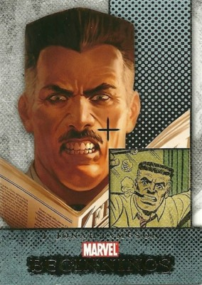 | | Ultimate Marvel Preview | | | | Breakthrough Issue | 1:1 | | 60 | Marvel Prime | 1:2 | | | X-Men Die-Cut | 1:2 | | | Autograph No artist signed more than 99 cards. Confirmed signers include Stan Lee, Brian Michael Bendis, Joe Sinnott, Kurt Busiek, Gerry Conway, and David Michelinie. | 1:72 | | | Sketch Confirmed artists include Dan Panosian, Graham Nolan, Jim Cheung, Joyce Chin, Cat Staggs, Kate Bradley, Remy "Eisu" Mokhtar, Jonboy Meyers, and David Mack | 1:72 | | 42 | Villain Hologram | 1:72 |
